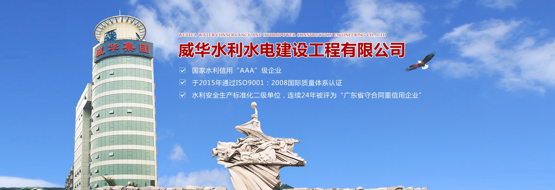梅州市威華水利水電建設工程有限公司是廣東威華集團旗下全資子公司,主要從事 “水利水電工程”及“工業與民用建筑工程”施工。公司成立于1992年,注冊資本9180萬,是一家具有水利水電工程施工總承包二級資質,房屋建筑總承包三級資質,市政總承包三級資質的一家大型民營施工綜合類企業。 公司現有各類工程技術、管理人員200多人,其中具有大專、本科以上學歷的占90%,具有中級以上職稱的人員80人,建造師90多人,專業人員包括水利水電、建筑、市政工程等。專業結構合理、人員配置齊全。公司擁有二級總承包各項施工大型機具100多臺套。 公司現累計完成各大中型水利水電工程200余項,現代化工廠房30多宗,寫字樓及商住房20余項,合計建成水庫庫容10億m3,堤防建設300公里長,總建筑面積100萬㎡。 為進一步發展和壯大企業實力,提高企業的市場競爭力,公司領導深刻地認識到質量是企業生存之本,發展之本,不斷提高企業質量管理水平,并與國際接軌,嚴格按照“規范施工、優異服務、確保業主滿意”方針,貫穿于施工管理全過程。公司是國家水利信用“AAA”級企業,于2015年通過ISO9001:2008國際質量體系認證,水利安全生產標準化二級單位,連續24年被評為“廣東省守合同重信用企業”。